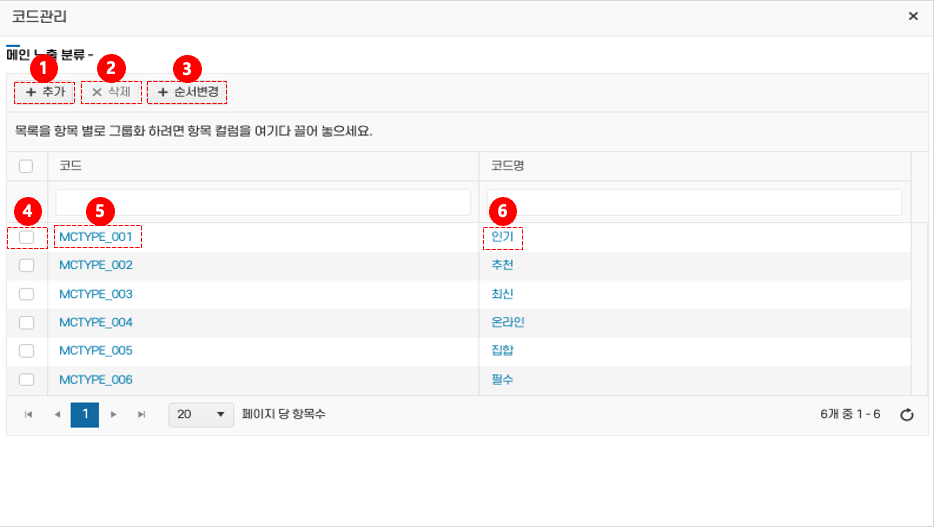 • 등록된 코드의 노출 순서를 변경할 수 있다.