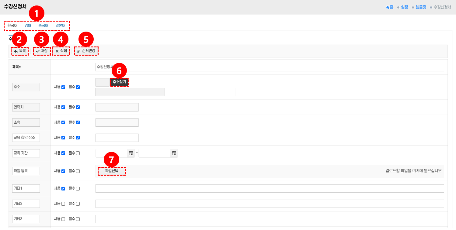 • 수강신청서 항목을 다국어로 관리할 수 있다.
